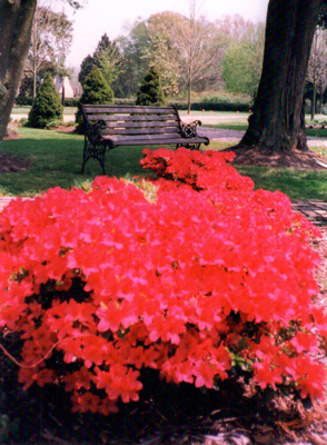 Each garden emanates from the beautiful azalea circle located midway of the cemetery drive. Pink and white dogwood trees also border the drive. Massive tapestry red brick posts mark the lasting entrance to this beautiful historical park-like cemetery.